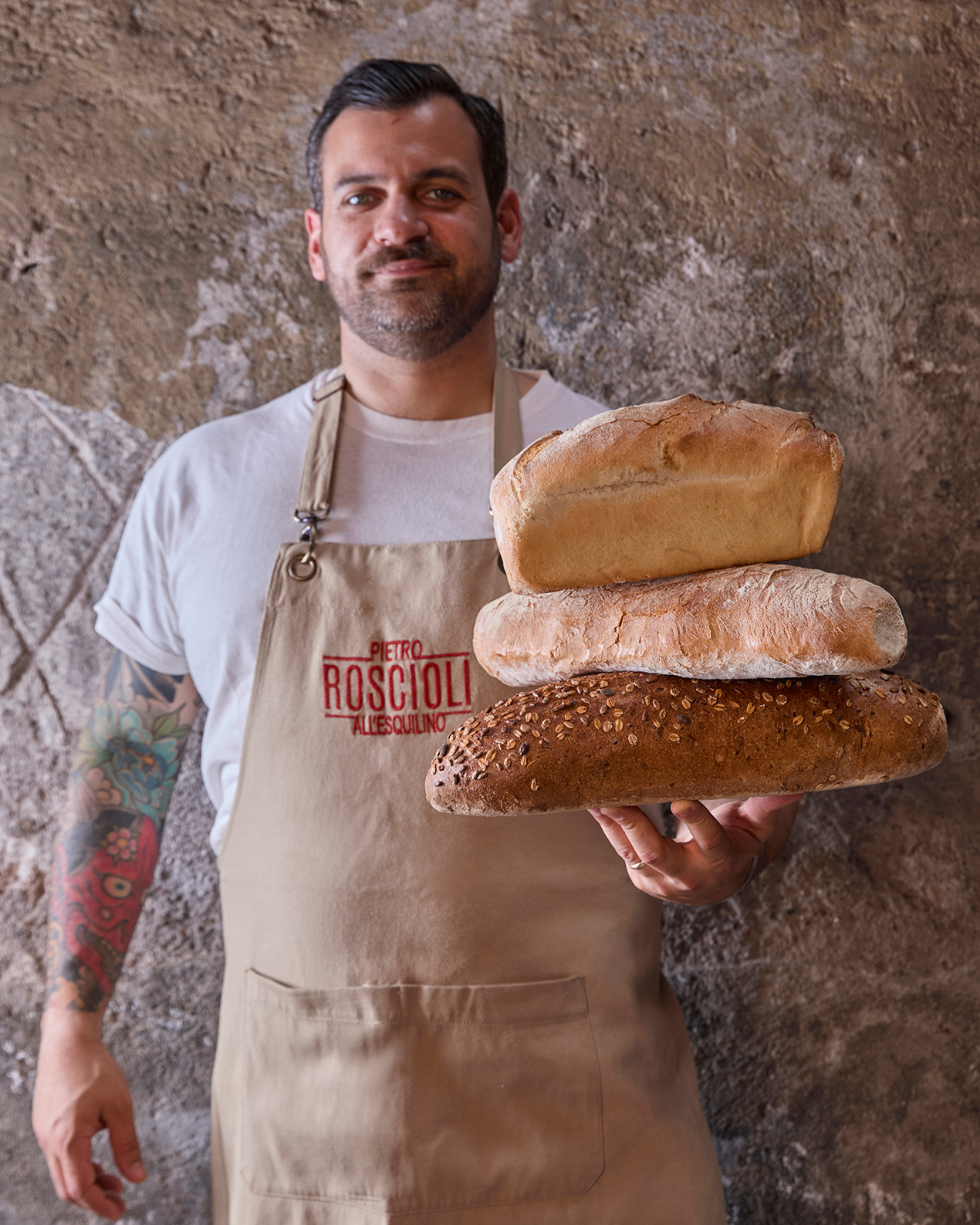 La storia di Pietro Roscioli è quella di un ragazzo arrivato a Roma dalle Marche a soli 12 anni per lavorare come panettiere. A 18 è già all’opera in uno dei forni più antichi della città, dove perfeziona l’arte che diventerà il suo marchio di fabbrica. Quell’esperienza, unita all’amore per la semplicità, darà vita nel 1982 al suo forno di via Buonarroti nel quartiere Esquilino, oggi simbolo di autenticità, qualità e tradizione artigianale.